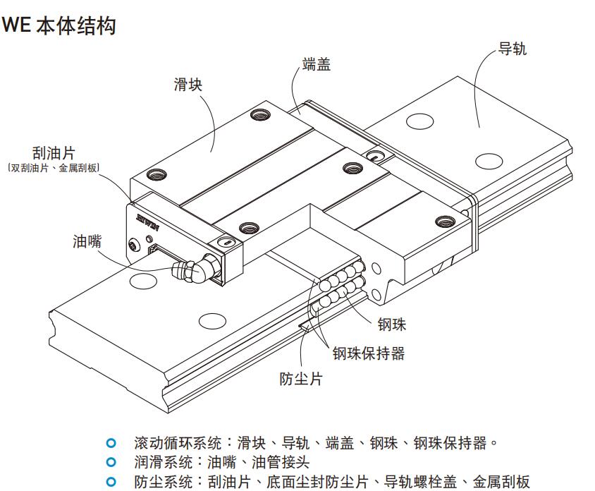 WE系列采用四列式钢珠承受负荷